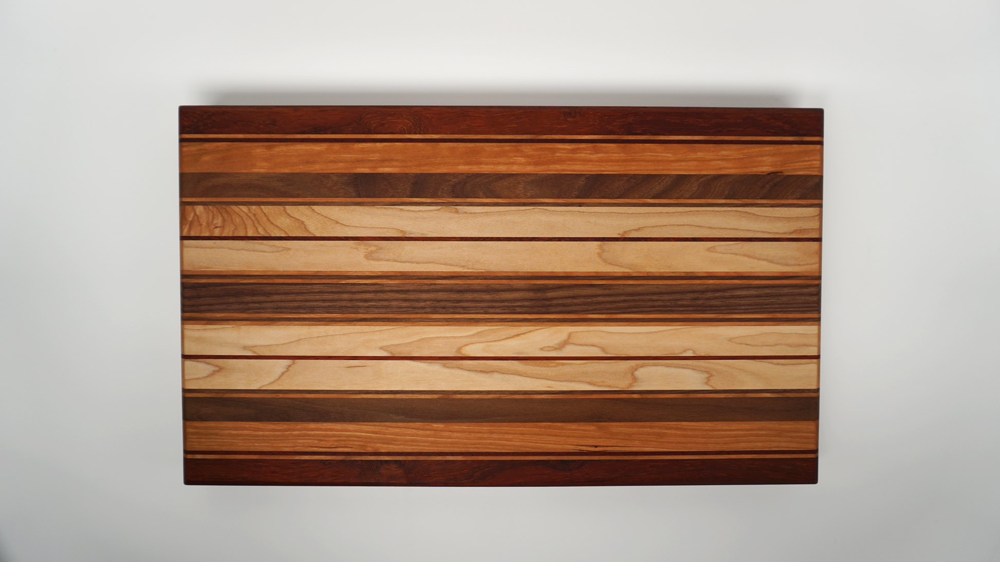 This piece is handcrafted from Maple, Black Walnut, Padauk and Cherry, selected for their durability, grain character, and visual balance.