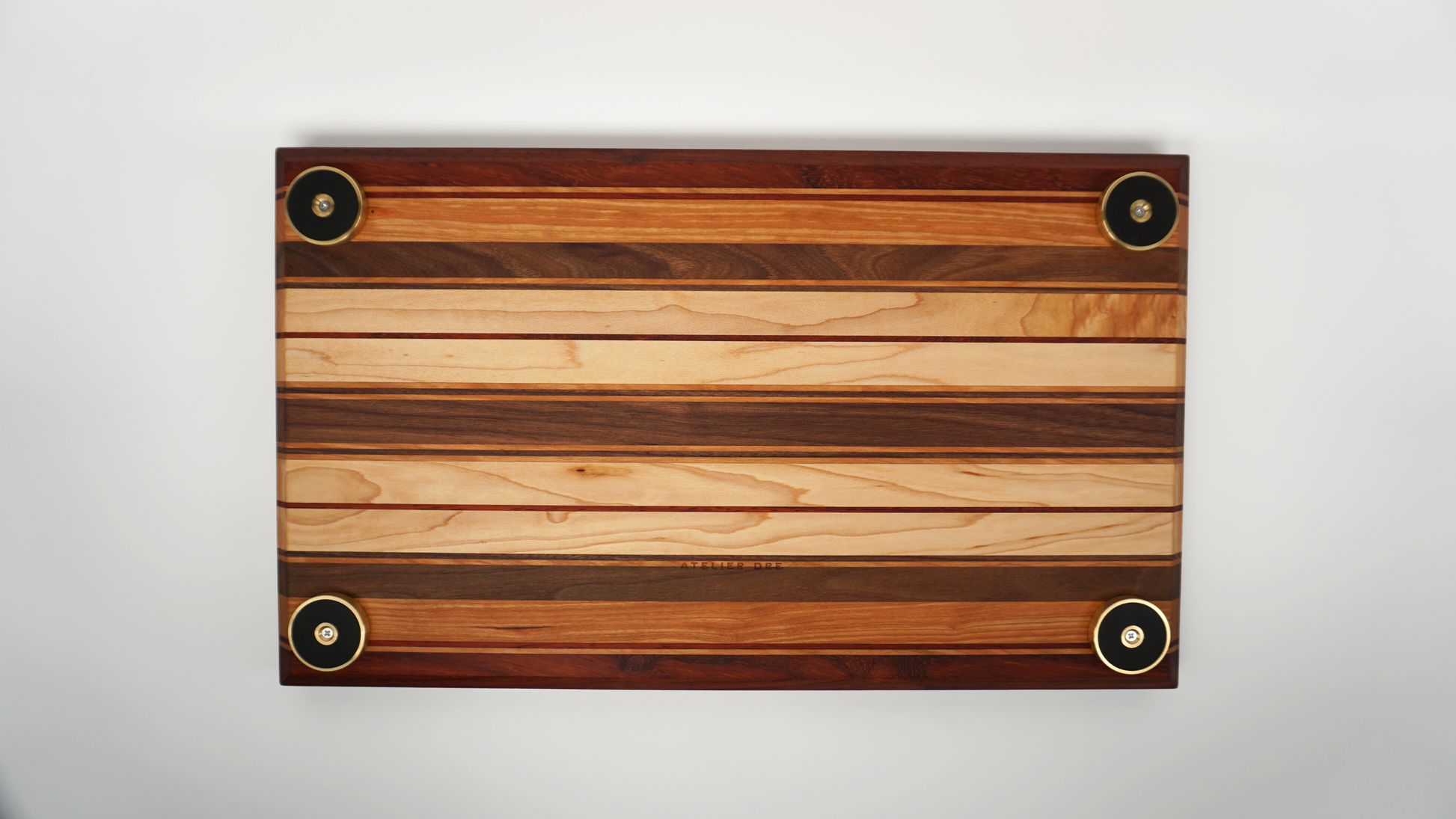 Fitted with solid brass feet and discreet rubber pads, the board is slightly elevated to promote airflow, improve stability, and protect both the board and your countertop during use.